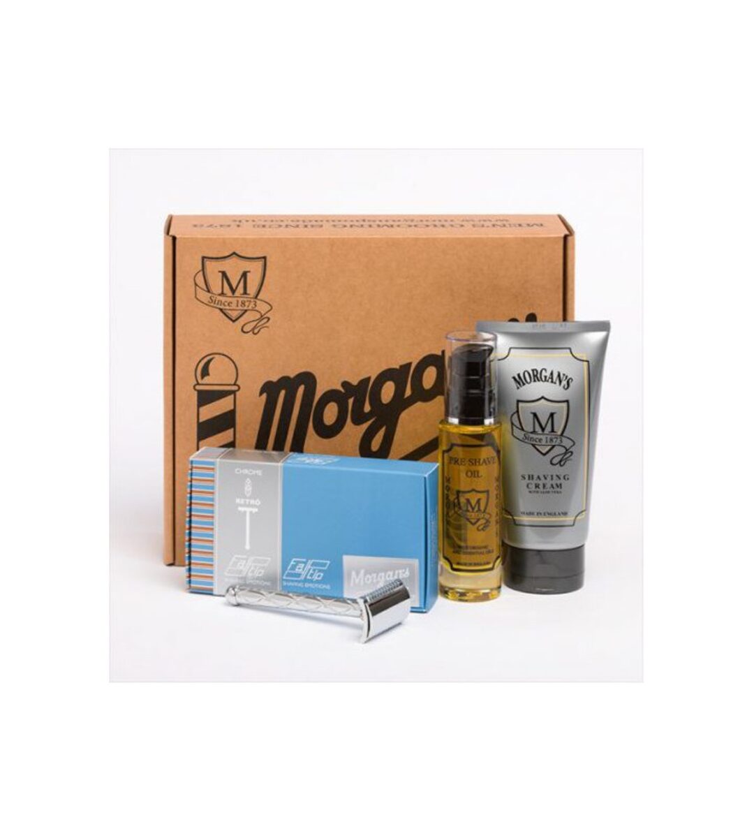 Morgan’s Pomade „Gentlemen’s Shaving Gift Set“ skutimosi priežiūros priemonių rinkinį sudaro: skutimosi kremas Morgan’s Pomade „Shaving Cream“, 150 ml, aliejus prieš skutimąsį Morgan’s Pomade „Pre-Shave Oil“, 50 ml ir skutimosi peiliukas “Morgan’s Pomade”.